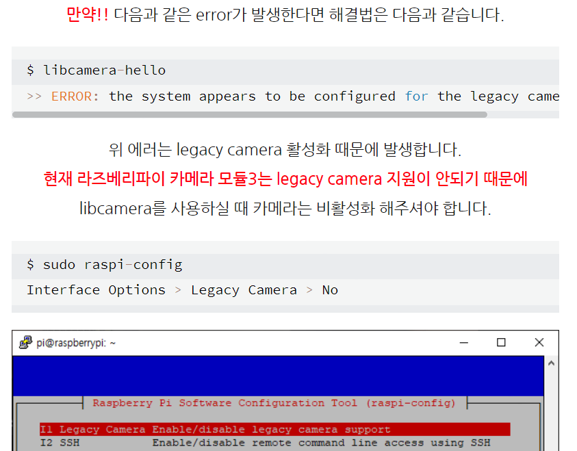 라즈베리파이의 신규 OS인 Bullseye에서는 카메라 제어를 위해 Raspicam 대신 libcamera 라이브러리를 지원합니다.