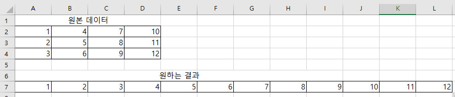 두 개의 행에 있는 데이터를 한 개의 행으로 만들기 INDEX($A$2:$E$3,MOD(COLUMN(B$1),2)+1,ROUNDUP(COLUMN(A$1)/2,0)) 응용 3개의 행 데이터를 1개의 행 데이터로 =INDEX($A$2:$D$4,MOD(COLUMN(C$1),3)+1,ROUNDUP(COLUMN(A$1)/3,0)) 놀아보자/Excel 2023.04.04